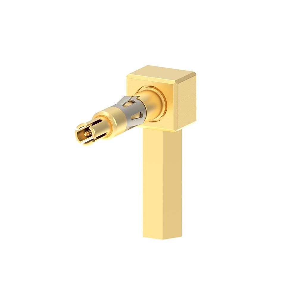 MPRF Connector Plug, Male Pin 50 Ohms Free Hanging (In-Line), Right Angle Solder