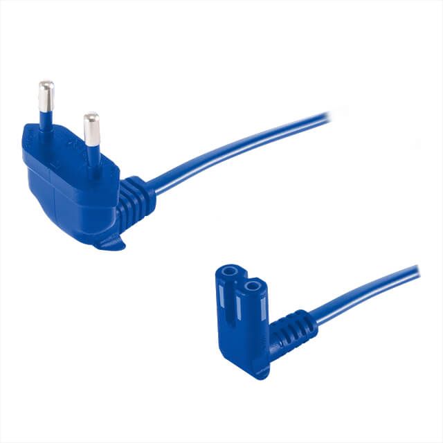 9.84' (3.00m) Power Cord Blue CEE 7/16, Right Angle To IEC 320-C7, Right Angle H03VVH2-F